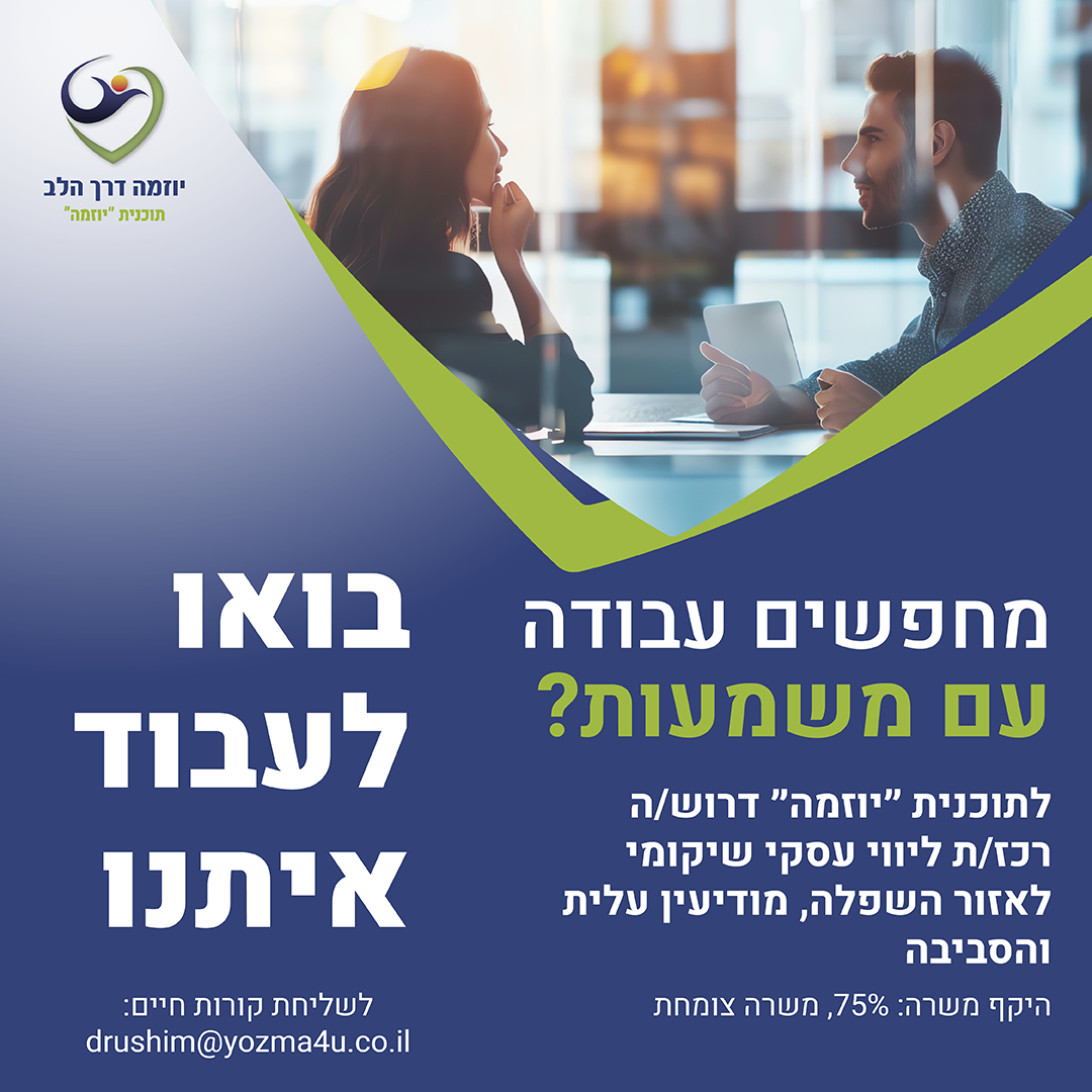 "לתוכנית "יוזמה" דרוש.ה רכז.ת ליווי עסקי שיקומי לאזור השפלה, מודיעין עלית